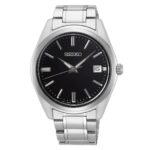 ساعت سیکو مردانه مدل SUR311P1 با موتور کوارتز تقویم دار و صفحه مشکی مناسب کلاسیک پوشان