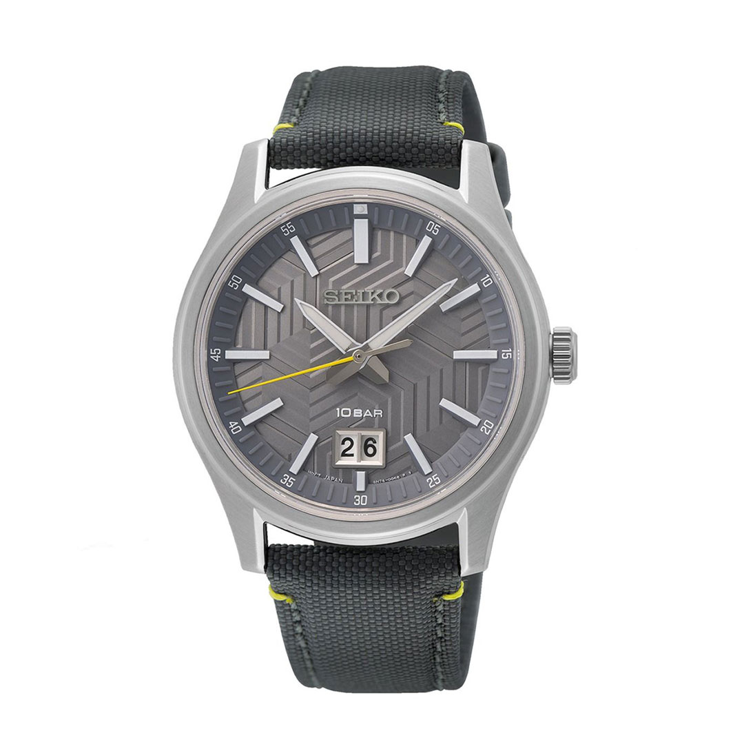 ساعت سیکو مردانه مدل SUR543P1 با موتور کوارتز تقویم دار و بند برزنتی زیرچرم مناسب اسپرت پوشان