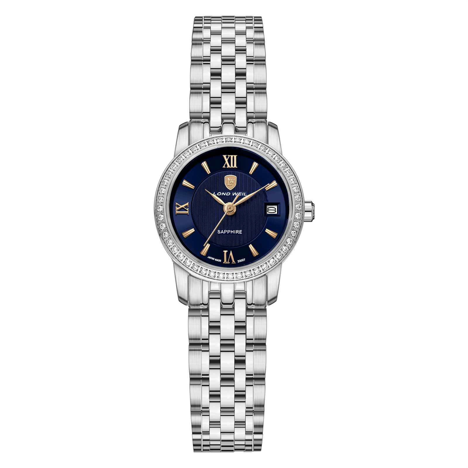 ساعت لوندویل زنانه مدل LW20097L با موتور کوارتز تقویم دار و نگین دور قاب مخراج کاری شده مناسب کلاسیک پوشان