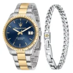 مازراتی مردانه لیمیتد مدل R8853100033 به همراه دستبنذ استیل ضد حساسیت و طراحی کلاسیک.