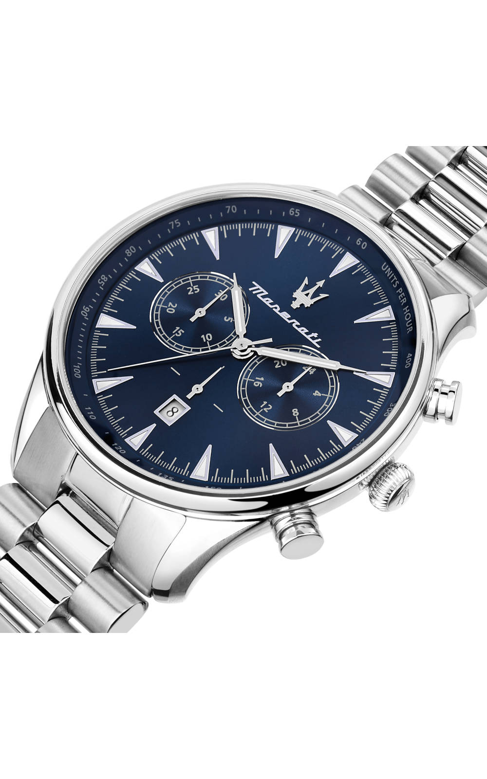 مازراتی مردانه مدل R8873646005 با طراحی بند متفاوت و جذاب و طراحی صفحه مینیمال که استفاده این ساعت رو برای استایل روزمره و کلاسیک راحت میکنه.