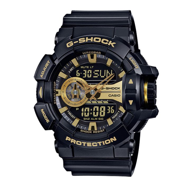 ساعت مردانه کاسیو جیشاک مدل GA‑400GB‑1A9DR – شکوه سیاه و طلایی
