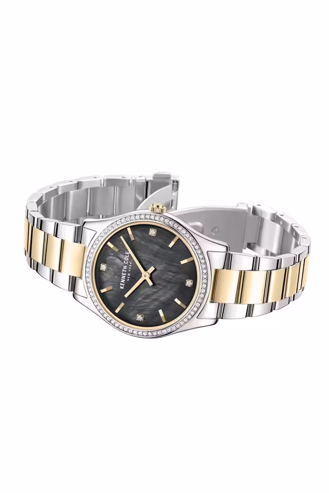 ساعت کنت کول زنانه مدل KCWLG2219702 با موتور کوارتز عدد نگین مخراج کاری شده و دور قاب نگین مخراج مناسب تیپ های رسمی و نیمه رسمی