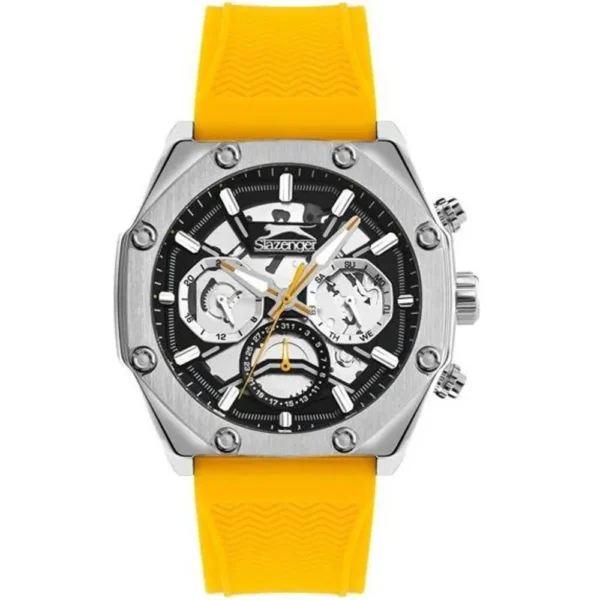 اسلازنجر مردانه مدل SL.09.2341.2.04 با بند رابر ضدحساسیت و ضد لک و ترکیب رنگ زیبای زرد و مشکی.